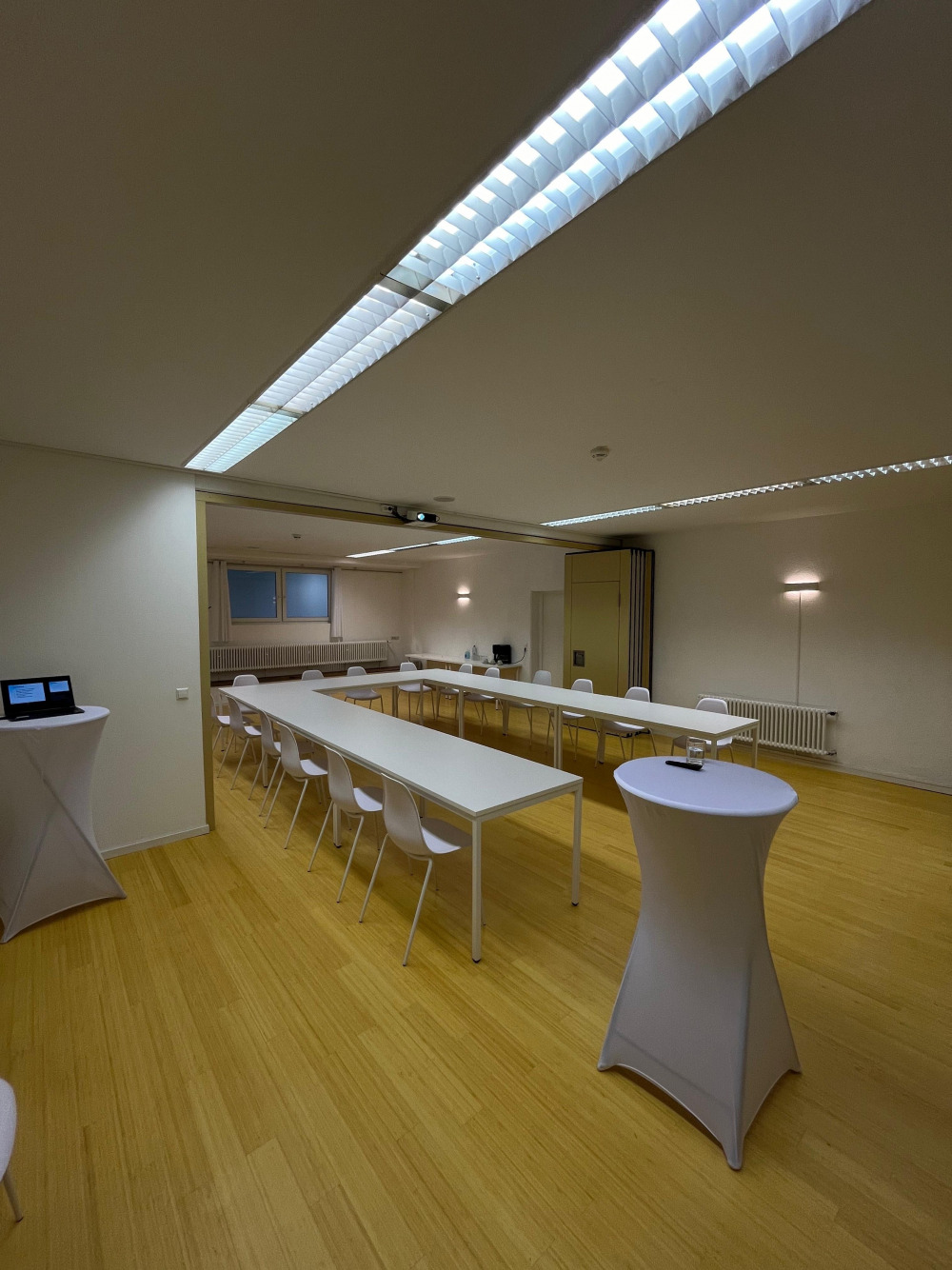 Mit unseren mobilen Trennwänden können wir den Saal schnell in einen kompakten Seminarraum verwandeln. Durch unsere Ausstattung kombiniert mit einer schnellen Internetverbindung könnt ihr eure Workshops nun bei BVenue planen!